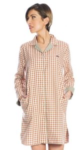 La collezione Bonjour et Bonne Nuit propone anche una splendida camicia da notte in calda flanella, morbida sulle forme e sfiziosa da portare, con spacchetti ai lati e sulle maniche. Colletto risvoltato in colore a contrasto e apertura sul davanti completa di bottoni.